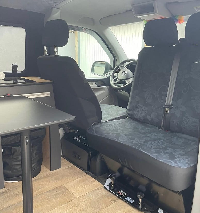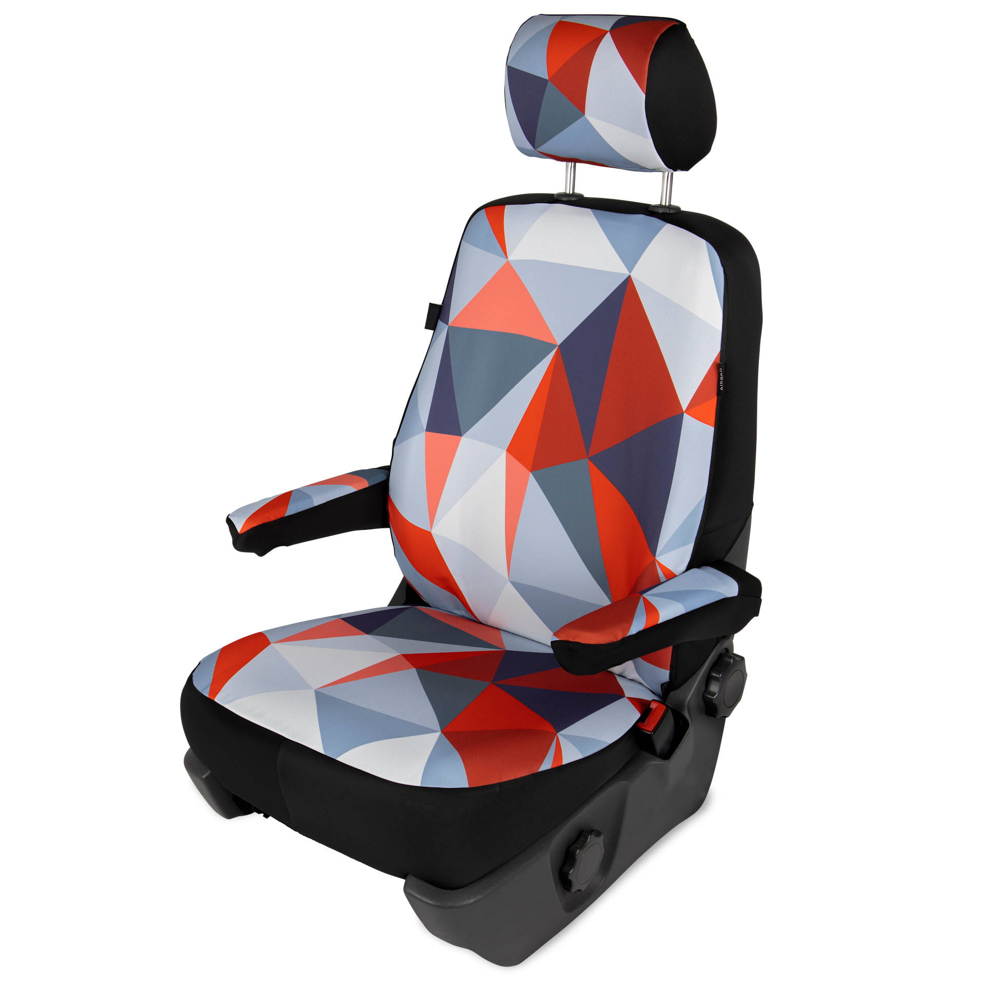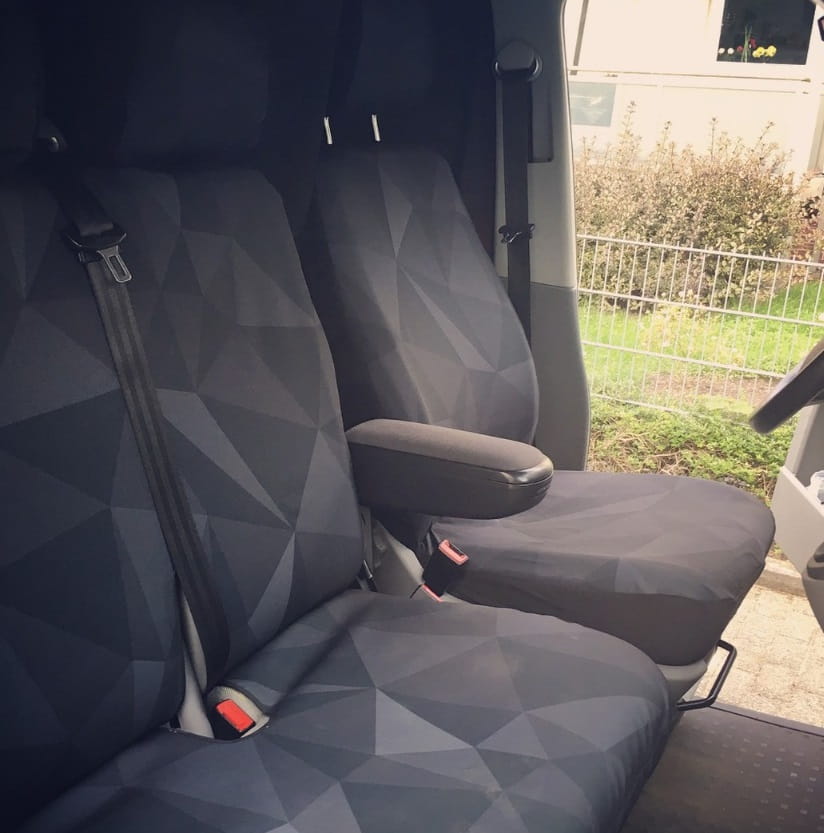 The covers are equipped with a special seam for airbags, marked with the "AIRBAG" label, which acts as a controlled rupture in the event of airbag activation. The covers have successfully passed technical tests on VW T5 and T6 models with internal airbags. Does not apply to older VW T5 models with an airbag under a plastic cover.