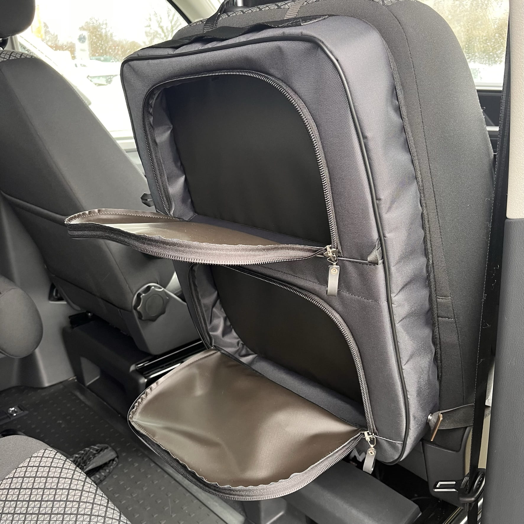 Organizer designed for the front seats of cars such as VW Caddy, Peugeot Rifter, Toyota Proace, VW Multivan, Renault Trafic and others