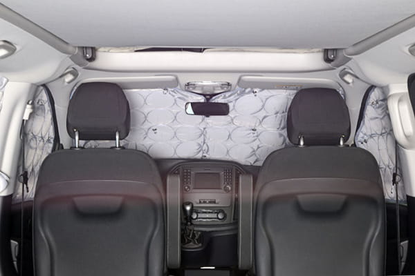 Thermal mats with a multi-layer structure effectively darken the interior of the vehicle and provide excellent insulation, both in summer and winter. Each mat is precisely matched to a specific window, which guarantees perfect adhesion.