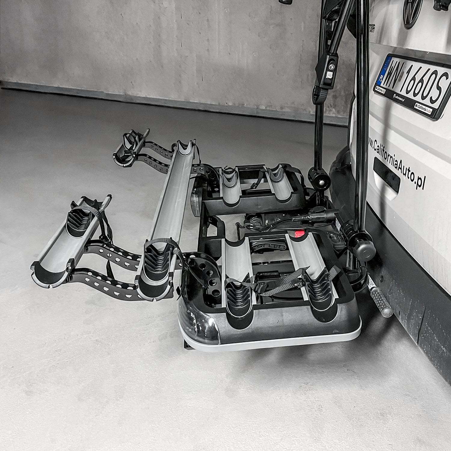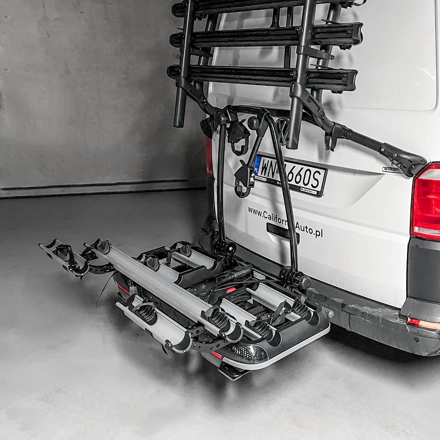 - High load capacity of 66 kg allows for the transport of electric bikes and regular bikes