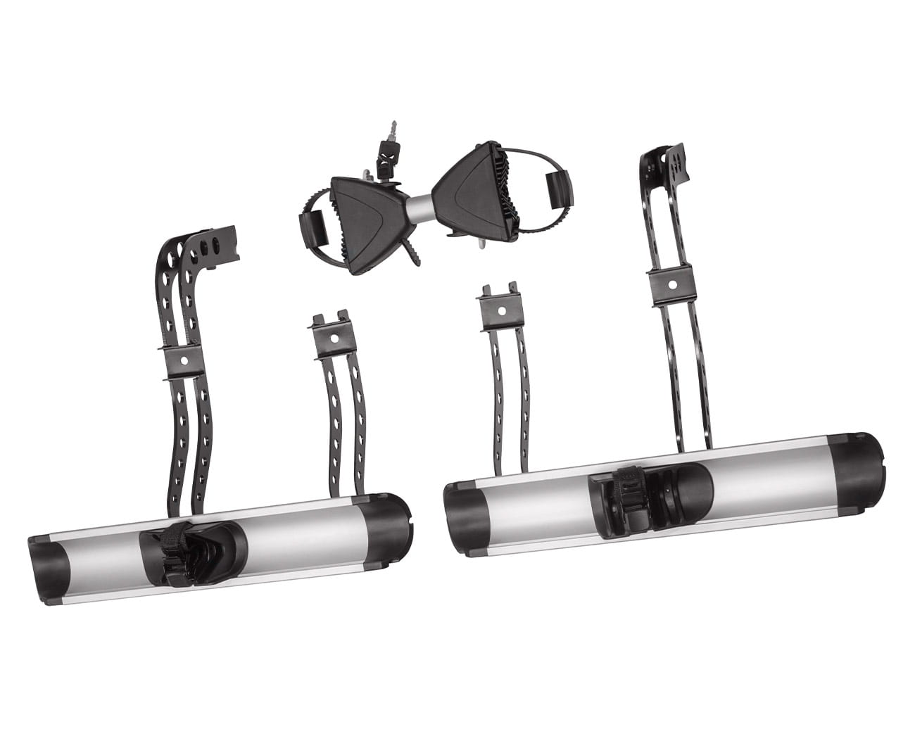 - Bikes can be locked on the bike rack and the bike rack on the rear rack (same key)