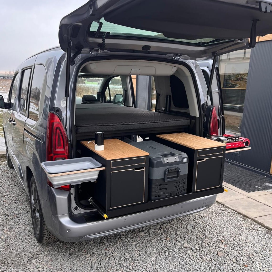 Transform your Van into the ideal campervan! The EXCLUSIVE modular camping box is a complete solution for travel enthusiasts, combining functionality, durability, and elegance in a single product.